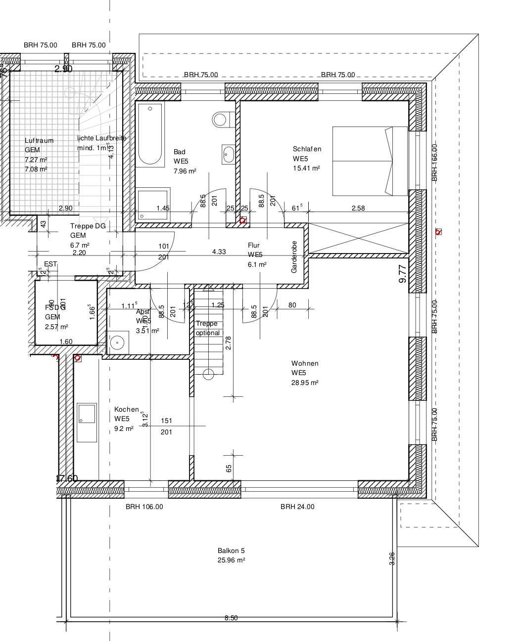Die Wohnung Nr. 5 verfügt über zwei Zimmer und umfasst ca. 81,85 qm sowie ein zusätzlich ausgebautes Dachstudio mit 20,96 qm.