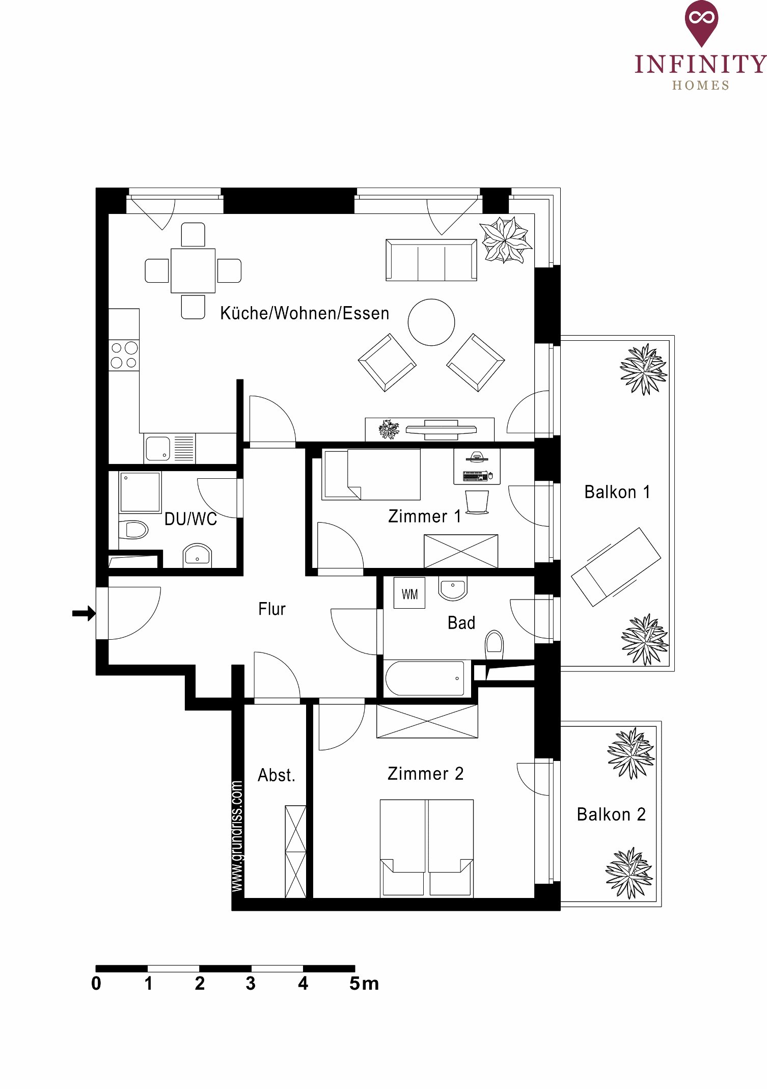Die Räumlichkeiten der Wohnung sind modern und gepflegt. Die zwei Schlafzimmer bieten genügend Platz für eine kleine Familie oder ein Paar. Die beiden Badezimmer sind hochwertig ausgestattet und bieten Komfort. Der offene Wohn- und Essbereich lädt zum Verweilen ein und ist lichtdurchflutet. Die beiden Balkone bieten die Möglichkeit, draußen zu sitzen und den Ausblick auf die Weser zu genießen.